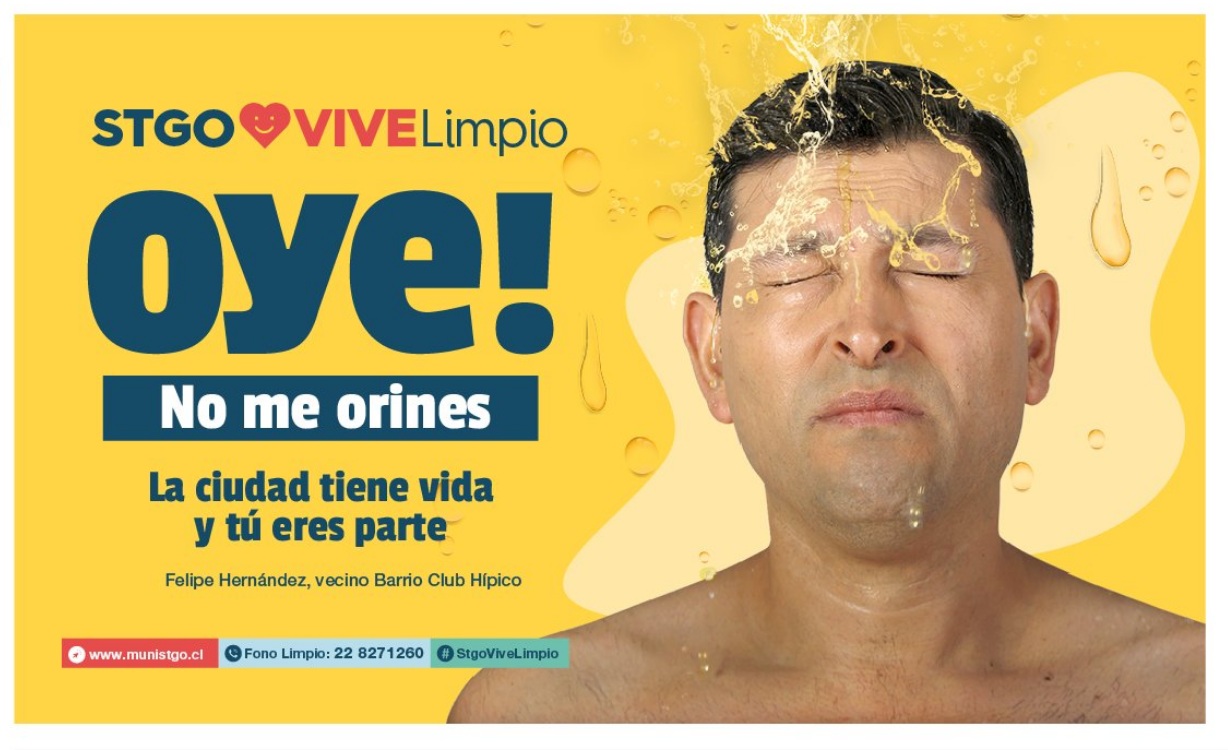 Fue en especial esta última la que sorprendió más a los transeúntes, al ver la imagen de un hombre recibiendo orina en la cara. "Oye! no me orines. La ciduad tiene vida y tú eres parte" dice el afiche de color amarillo.