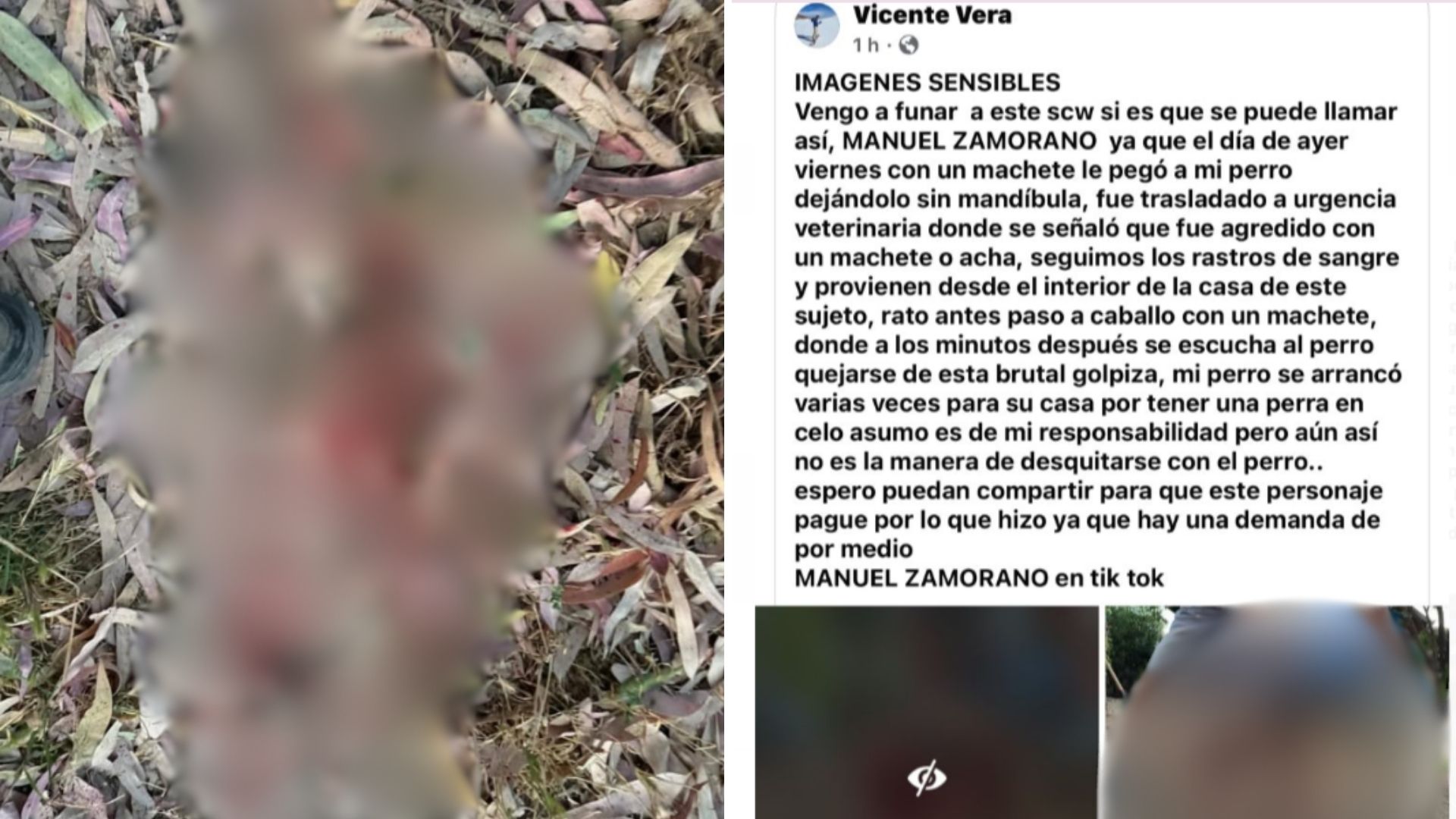 La denuncia expuesta en redes sociales, exponía que el viernes el sujeto "le pegó con un machete a mi perro dejándolo sin mandíbula. Fue trasladado a urgencia veterinaria, donde se señaló que fue atacado con un machete o hacha".