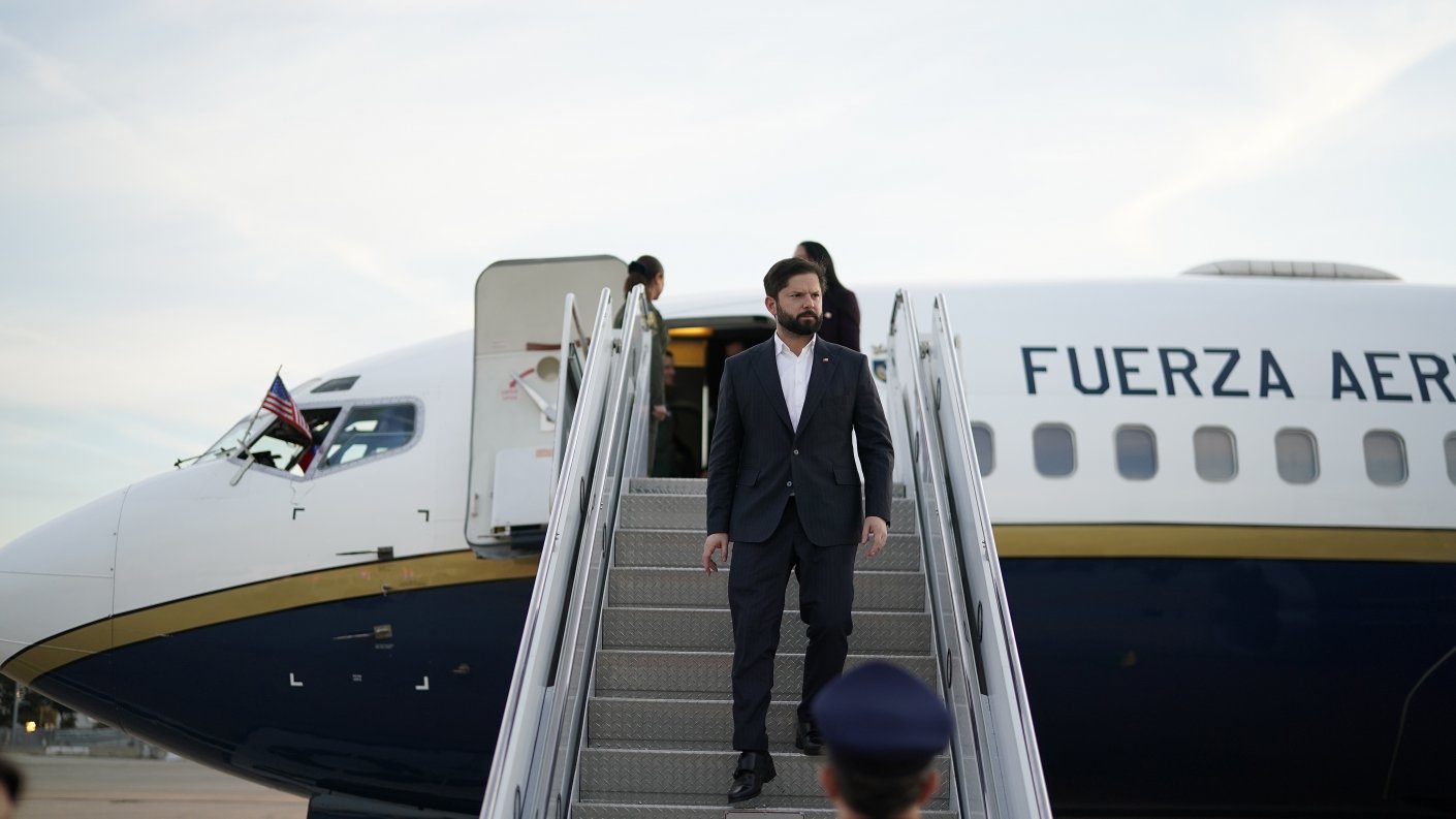 El mandatario compartió las primeras imágenes de su llegada a Estados Unidos junto a los ministros Alberto van Klaveren, Ximena Aguilera, Maisa Rojas y Aisén Etcheverry.