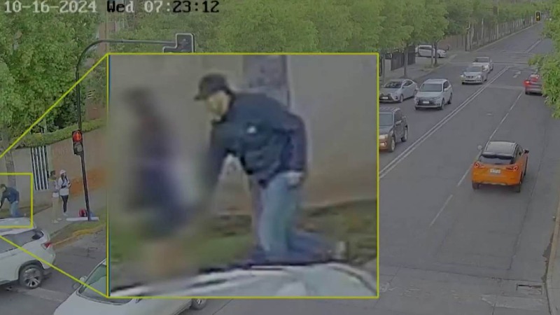 Cámaras de televigilancia han logrado identificar in fraganti el repugnante modus operandi. En uno de los videos a los que accedió CHV Noticias, aparece siguiendo a una niña que caminaba sola, para luego sacar un elemento de su bolsillo.