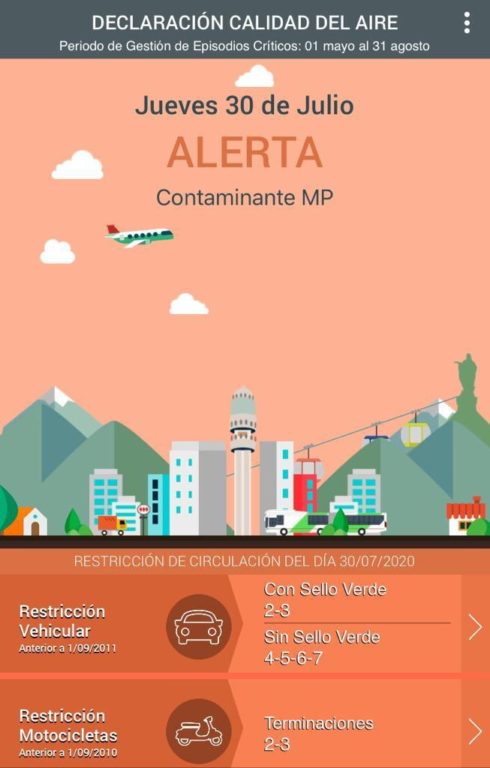 Las malas condiciones de ventilación y la baja calidad del aire se han mantenido durante los últimos días en la capital. La autoridad dispuso de restricción vehicular para automóviles y motocicletas.
