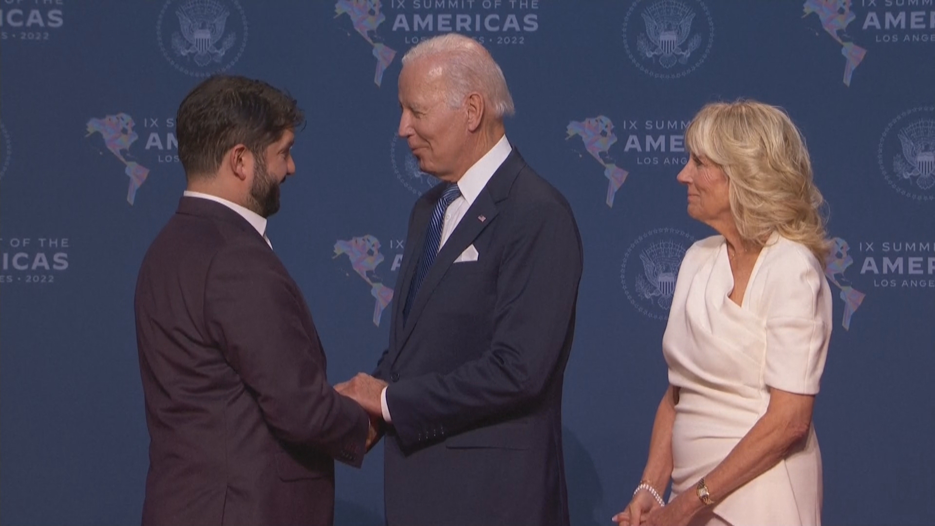 Presidente @gabrielboric participa de Ceremonia Inaugural de la lX Cumbre de las Américas, siendo recibido por Presidente de Estados Unidos @JoeBiden y Primera Dama @FLOTUS pic.twitter.com/ZmeQrnOHML— Presidencia de Chile (@Presidencia_cl) June 9, 2022