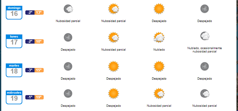 Te puede interesar: Esto es lo que debes hacer si ves una persona en situación de calle en mal estado o en riesgo Según información de su sitio web, este domingo comenzarían a sentirse las heladas con una mínima de -2°C y una máxima de 13°C.El lunes, en tanto, será una de las jornadas más frías con una mínima de -2°C y una máxima de apenas 10°C.