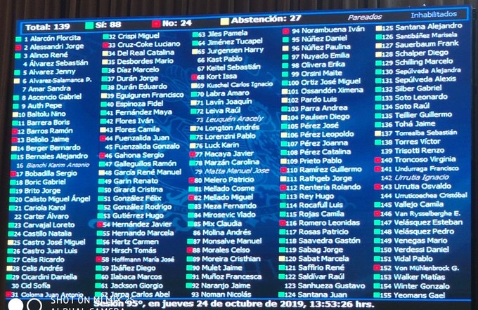 La decisión fue adoptada por una votación de 88 votos a favor, 24 en contra y 27 abstenciones.