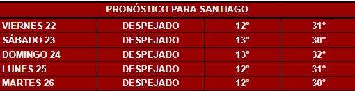 Mientras que en las playas de la zona central se mantendrá nuboso hasta el sábado, por lo menos, pero con algo de sol durante las tardes en ciudades como Viña del Mar y Valparaíso. Santiago, en tanto, se mantendrá con temperaturas máximas habituales para enero.