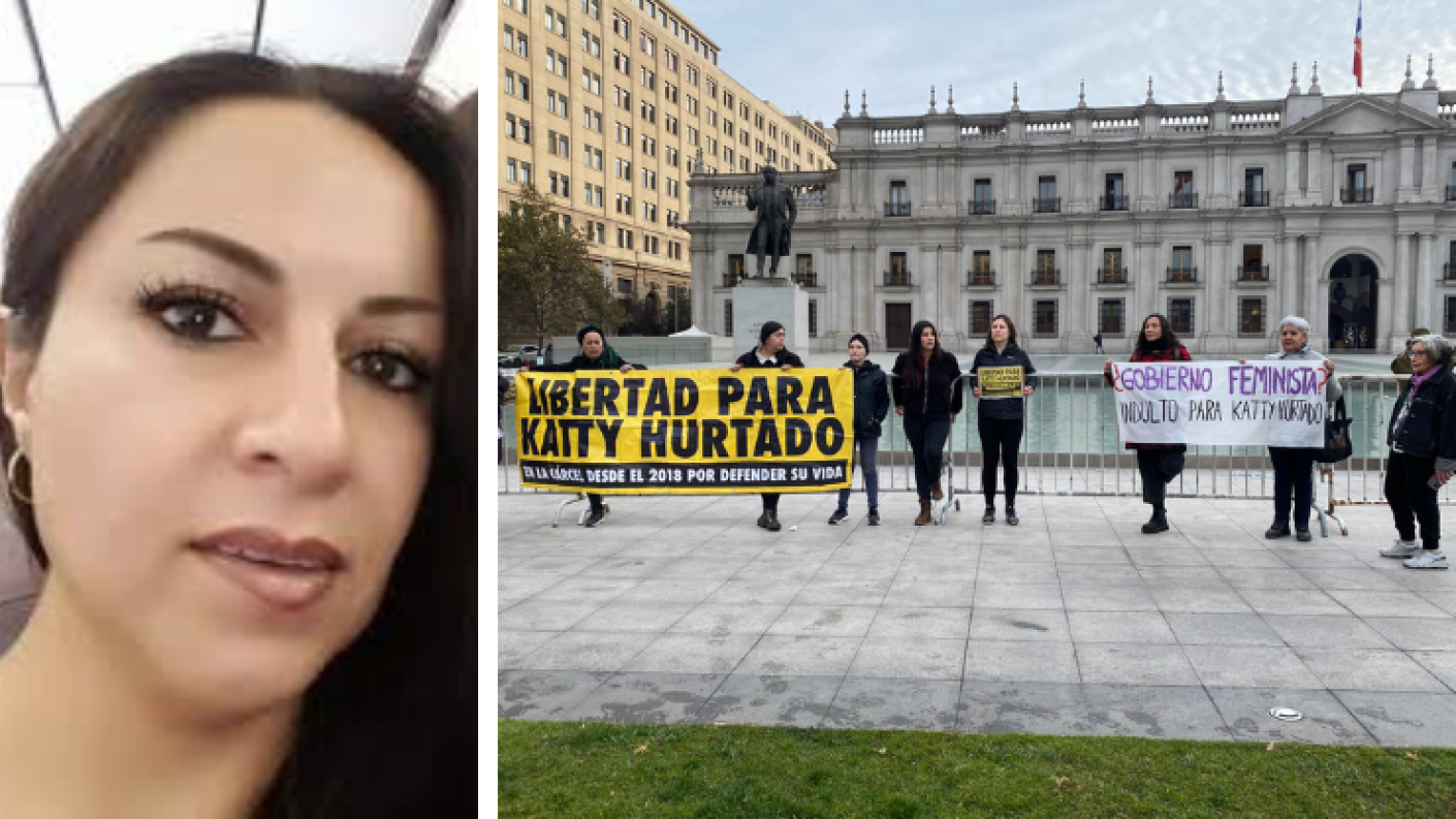 "Presidente Boric, indulte a Katty Hurtado" e "indulto para Katty, que defendió su vida, de una agresión sexual y femicida", fueron parte de los cánticos de las manifestantes.
