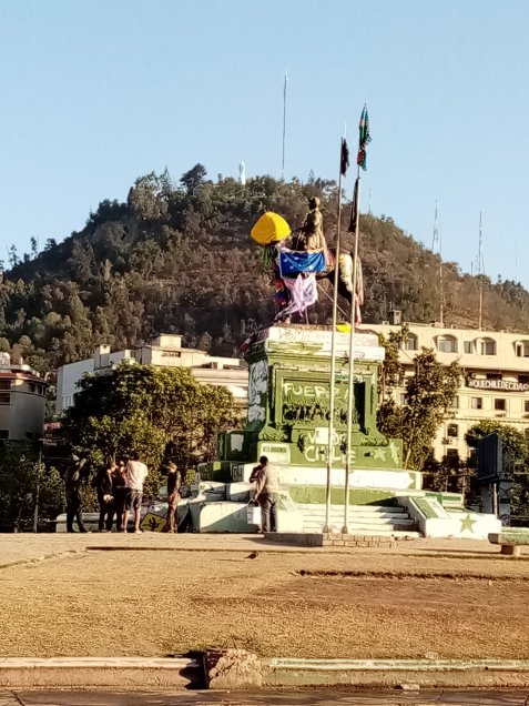 Durante la mañana de este martes, distintas estatuas y paredes en las cercanías a Plaza Italia amanecieron pintadas de verde y con mensajes de apoyo a Carabineros.