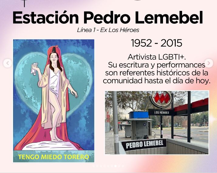 La mañana de este sábado, distintas estaciones del Metro de Santiago fueron intervenidas en memoria de figuras del mundo LGBTIQA+.