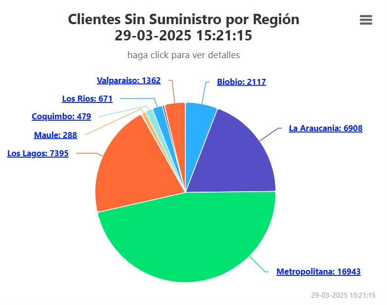 De esta cifra, la mayor parte se concentró en la RM con 16.943 clientes afectados, seguida de Los Lagos con 7.395 y La Araucanía con 6.908.