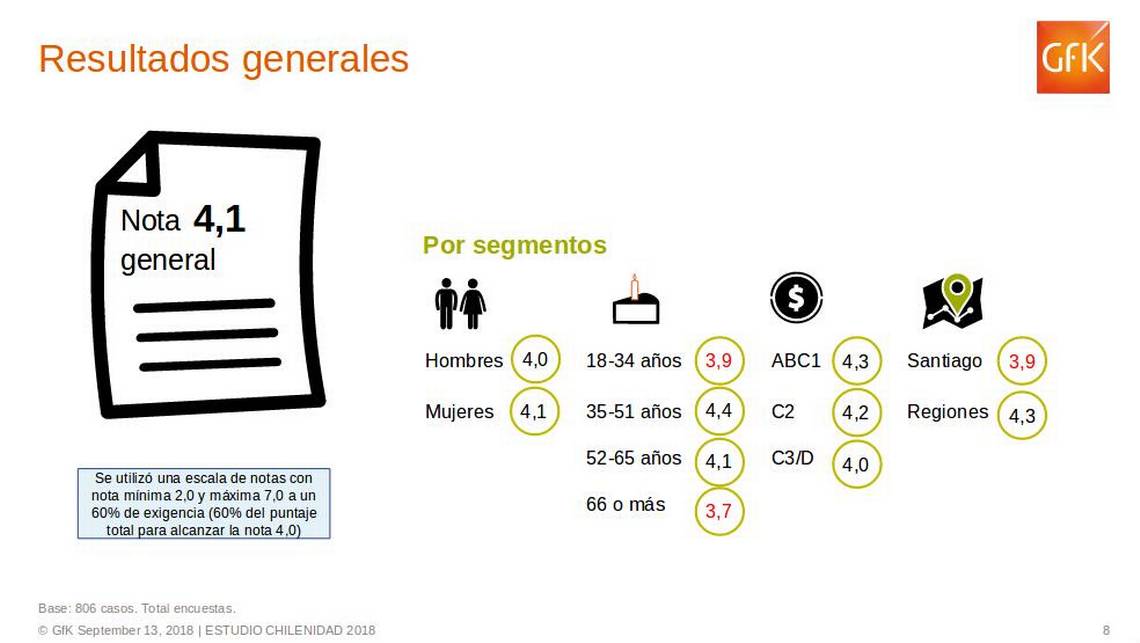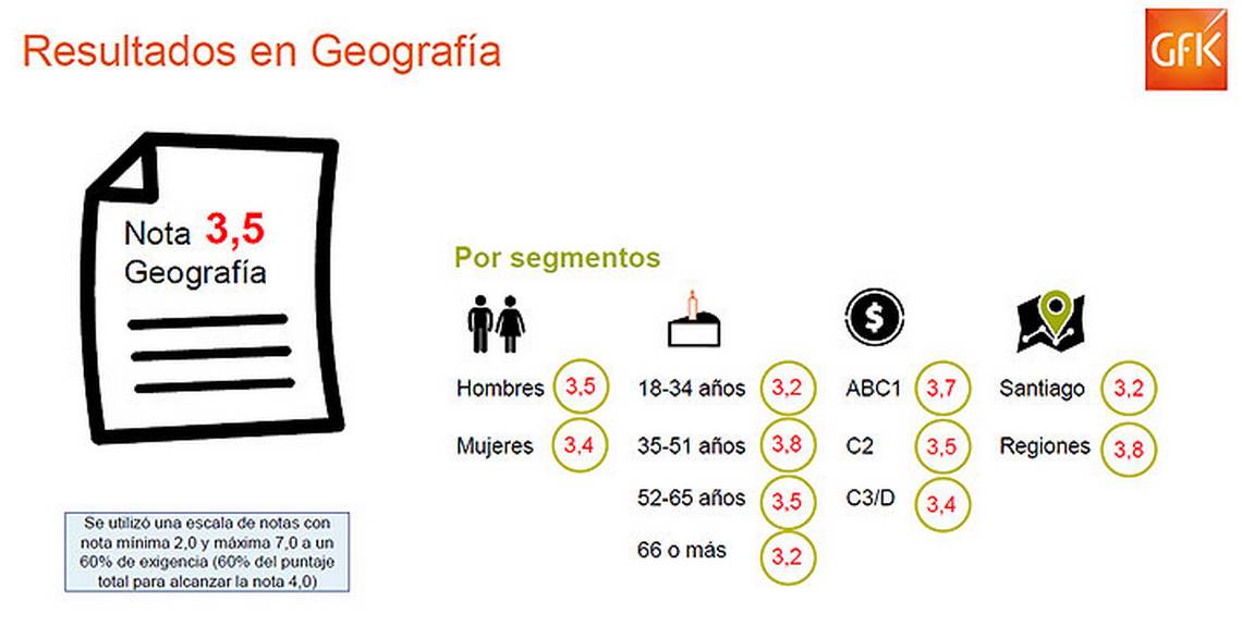 Los resultados no fueron los mejores: los chilenos obtuvieron un premio de 4.1, siendo el grupo entre 31 y 51 de edad el que consiguió una nota más alta (4,4).