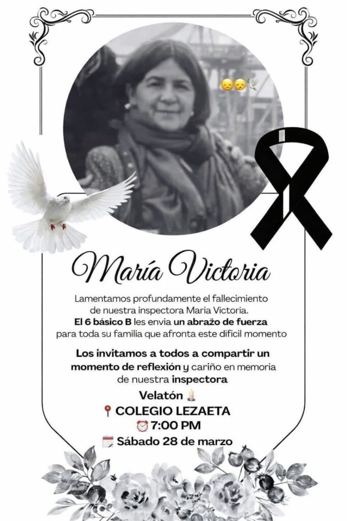Al respecto, grupos de alumnos informaron a través de redes sociales: “Lamentamos profundamente el fallecimiento de nuestra inspectora, María Victoria”.