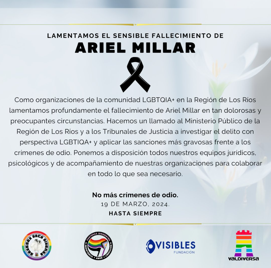 "Como organizaciones de la comunidad LGBTIQA+ en la Región de Los Ríos (…) hacemos un llamado al Ministerio Público de la región y a los Tribunales de Justicia a