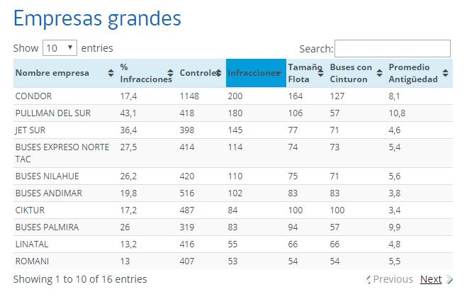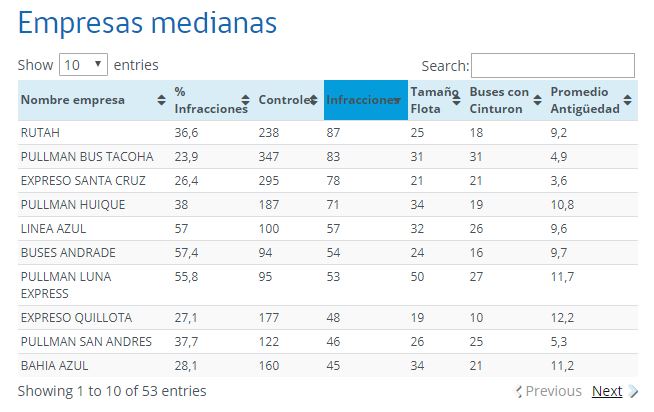 En base a las fiscalizaciones realizadas entre enero y junio de 2019, el Ministerio de Transporte elaboró una nueva lista del número de sanciones por empresa, divididas según su tamaño: pequeñas, medianas, grandes y extra grandes.