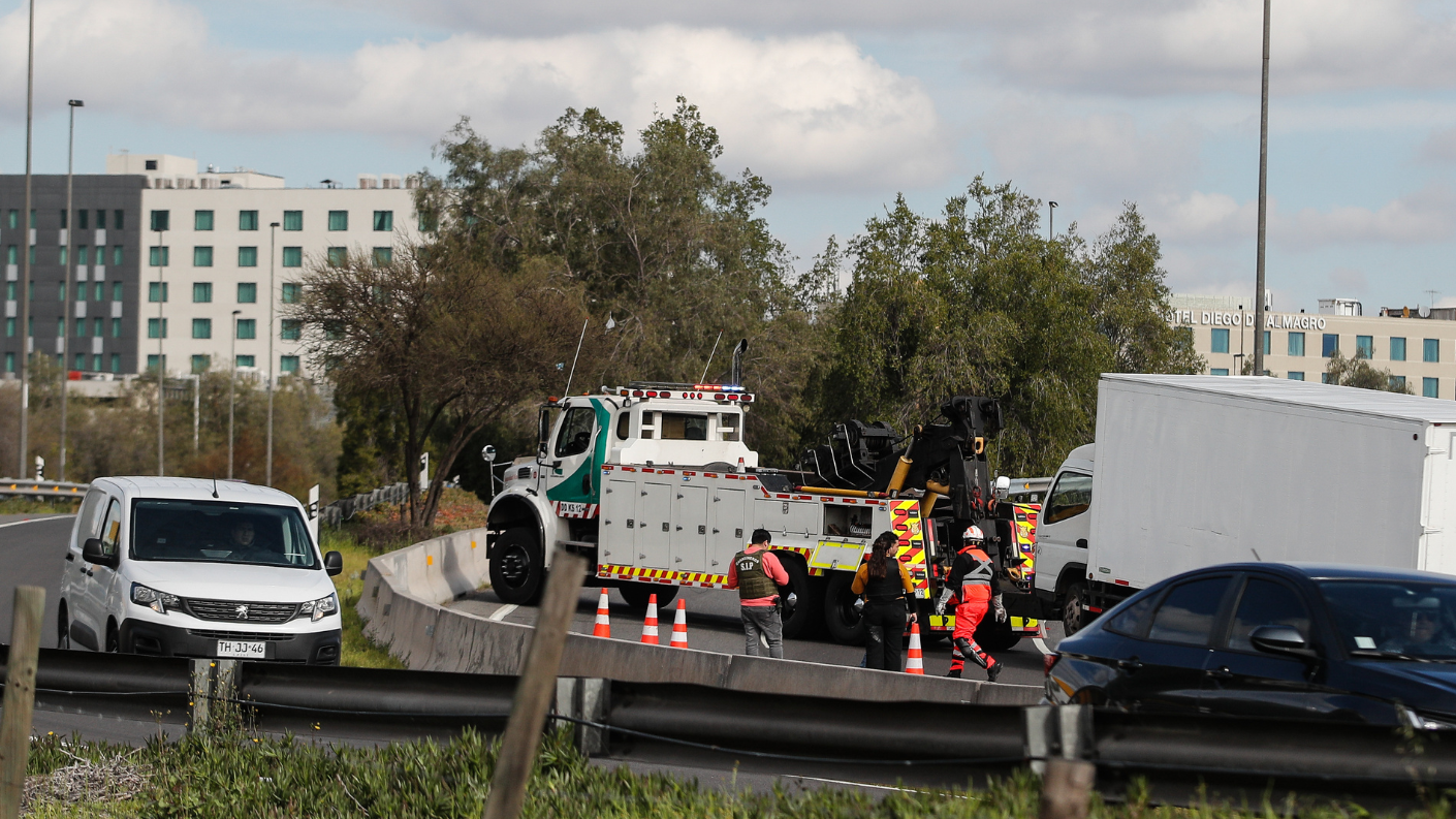 Una carabinera resultó herida en medio de un procedimiento por el robo a dos camiones que se registró la tarde de este martes en el Aeropuerto de Santiago.