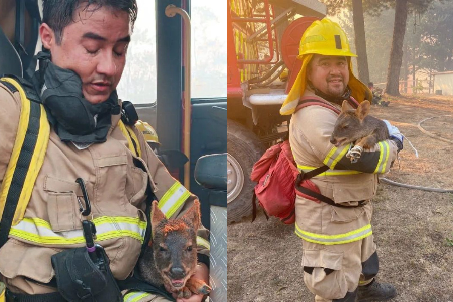 El rescate ocurrió este jueves durante un incendio forestal en el sector de Juan Chico, entre Concepción y Florida. "Tras entregar los primeros auxilios relativos a hidratación y shock térmico, nuestros bomberos pudieron entregar sano y salvo a autoridades especialistas a esta hermosa especie", detalló la institución.