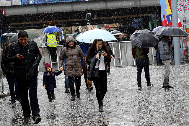Santiago, durante el miércoles, sólo recibirá chubascos esporádicos cuyos montos debieran fluctuar entre 2 y 5 milímetros. Claro que los vientos sumarían rachas de hasta 50 kilómetros por hora en la capital, mientras que en Valparaíso podrían llegar a 70 kilómetros por hora, según anticipa la Dirección Meteorológica de Chile.