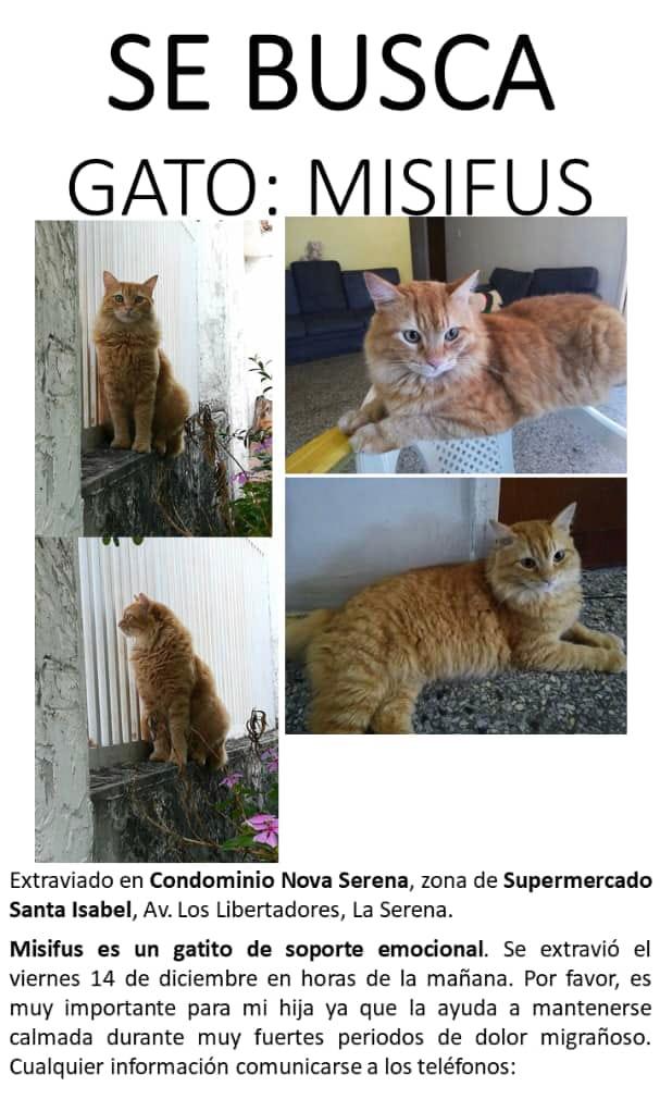 Además, lo describen como un gato tímido y manso, que no se acerca con facilidad a las personas. “Nuestra esperanza es que haya estado con mucha hambre y que alguien que le gusten los gatos le haya ofrecido comida y ojalá lo esté cuidando”, agregó Rafael al medio nacional.