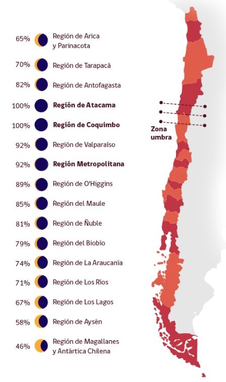 Mientras que el mayor provecho del eclipse que se verá el 14 de diciembre de 2020 estará en las regiones de La Araucanía y Los Ríos.