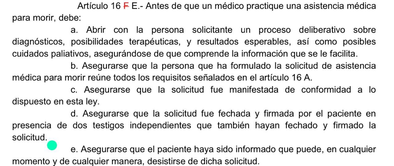 Gobierno afirma que nuestra ley de #Eutanasia no contemplaría la opción de que el paciente se retracte. Absolutamente FALSO, el paciente puede hacerlo en todo momento. Ministro @juanjoseossasc podría leer el Artículo 16 E, literal (e).