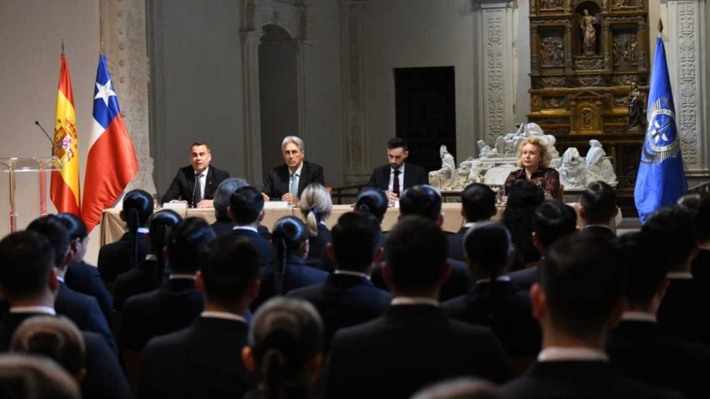 Rafael Pérez Ruiz, funcionario del Gobierno español, destacó a la policía chilena en una actividad de la Universidad de Alcalá de Henares, donde participaron aspirantes a Detective del Tercer Año de la Escuela de Investigaciones Policiales de la PDI.