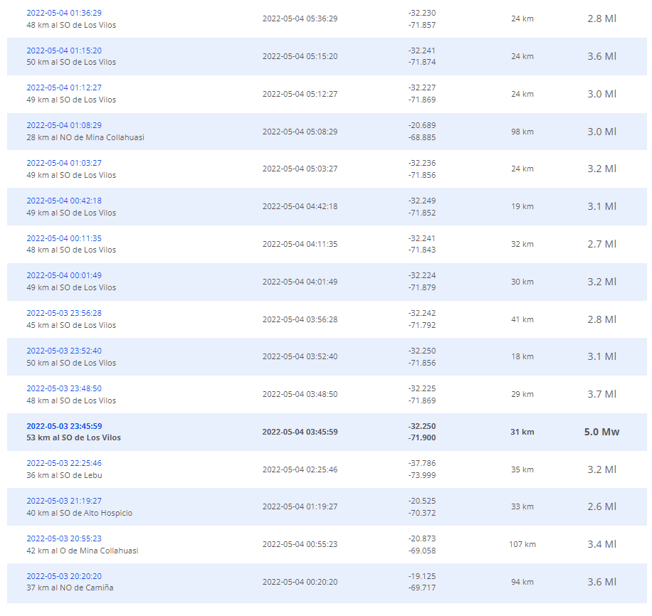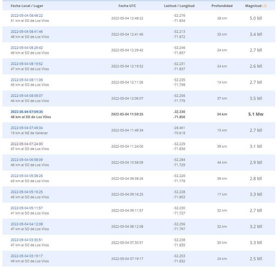 Así dio cuenta el organismo en su sitio web, donde informa que el primero de ellos se percibió este martes 3 de mayo a las 23:45 horas.
