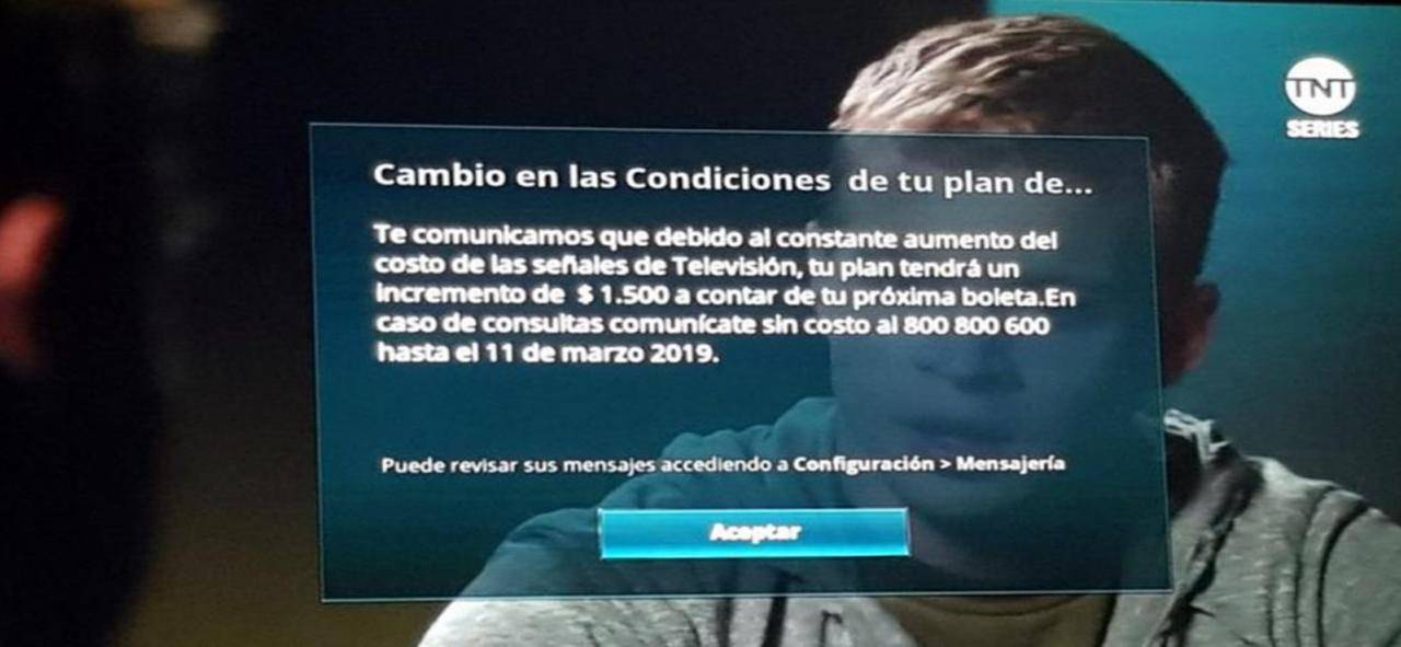 Lee también: ¿Cómo cambiar o devolver un producto? Esto puedes hacer con el regalo que salió malo o no te gustóLa empresa comunicó a los consumidores de este incremento unilateral a través de documentos adjuntos en la boleta de pago, correos electrónicos y un cuadro informativo que aparecía desplegado en la pantalla de los televisores, obligando a los consumidores a aceptar las nuevas condiciones para poder seguir viendo la programación, tal como se ve en la imagen principal.