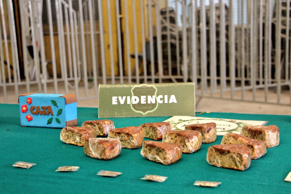 Con un punto de prensa y exhibiendo la evidencia fue informada esta incautación del OS7, en la que se mostró la caja celeste con diseños de flores que contenía los 11 trozos del famoso "queque mágico".