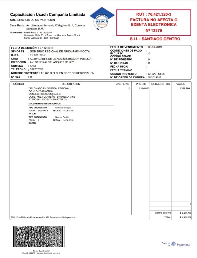 Lee también: Emprendedora revela cómo Iris Salaberry pedía coimas a otros trabajadores para acceder a feriasMás tarde, el mismo año fue beneficiada nuevamente con un diplomado de Gobierno y Gestión Pública en la Universidad Alberto Hurtado. En dicha ocasión se trató de la única funcionaria en todo el servicio a quien se envió a un diplomado pagado por el Gobierno Regional, nuevamente con gastos cubiertos en pasajes aéreos y viático.