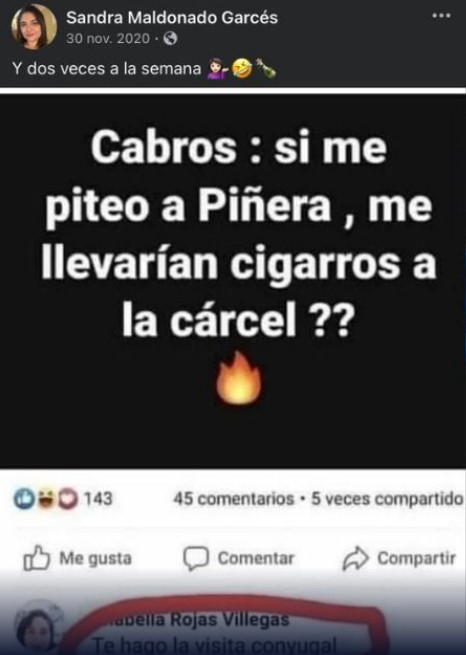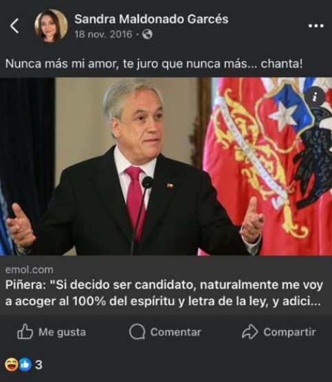 Entre los controversiales dichos, se encuentran publicaciones donde hace alusión al mencionado exmandatario, su segunda adminsitración y sobre Carabineros.