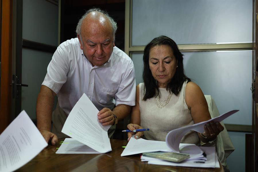Rodolfo Reyes (i), abogado y sobrino de Pablo Neruda, junto a Elizabeth Flores (d), abogada en caso Neruda / EFE