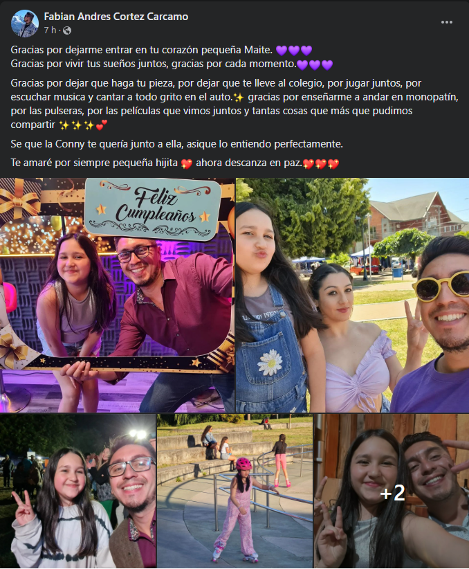el fallecimiento de Maite, la hija de Constanza Saavedra, reconocida locutora radial de Osorno que también perdió la vida, además de su