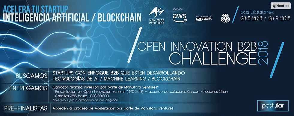 Junto a @ManutaraVC, @AWSCloud y @OrionLabsDX te invitamos a ser parte del Open Innovation Summit 2018, podrás conocer las mejores prácticas de innovación abierta de la mano de destacadas empresas, emprendedores y expertos en innovación. Más info → https://t.co/xVjpLBfl3P pic.twitter.com/N1hnQZsEaa— Soluciones Orión (@SolucionesOrion) September 21, 2018