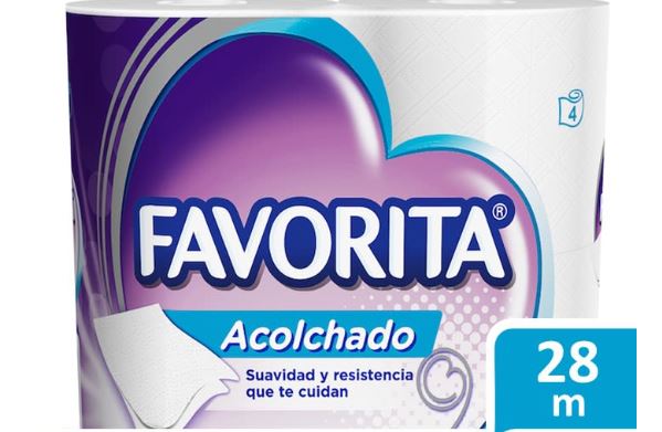 Pero no es el único. En el mismo análisis de Odecu de 2018, se apuntó que el papel higiénico de la marca Favorita, elaborado por SCA Chile S.A. (actual Essity), presentaba medidas de 10,9 cm de largo y 9,6 cm de ancho, de 28 metros de largo del rollo cada uno.
