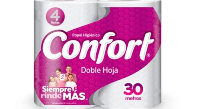 El papel Confort doble hoja, de 30 metros por rollo y 264 hojas, de CMPC Tissue S.A. (actualmente Softys), marcó un largo de 11,5 cm y 9,5 cm de ancho por hoja.