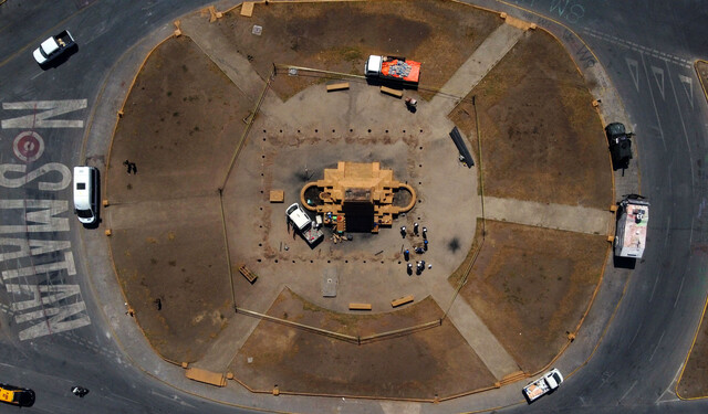 Con cerca de 3 metros de altura y con un peso de unas 12 toneladas resultó el cierre perimetral, poniendo fin a los trabajos que comenzaron con la remoción de la estatua del general Baquedano el 12 de marzo pasado.