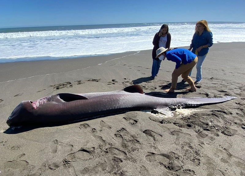 En esta misma línea, Vega precisó que "siempre recomendamos no acercarse y mucho menos manipular fauna marina silvestre. No obstante, el concejal me indicó que no sólo había varado esta especie que luego identificamos como tiburón Vaca (Hexanchus griseus) sino que además estaba en trabajo de parto".