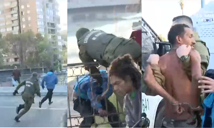 Luego de eso, el vendedor ambulante volvió a escapar, siendo perseguido por un carabinero en medio de la calle. Saltó hacia la ladera del río Mapocho, pero logró ser retenido por segunda vez.