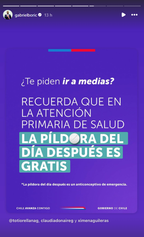 Autoridades de gobierno, entre ellos el presidente Gabriel Boric, compartieron una publicación sobre la pastilla anticonceptiva, luego de la polémica acusación contra Karol Lucero, quien le pidió a la DJ Isi Glock que tomara la píldora del día después y él pagaba "la mitad".