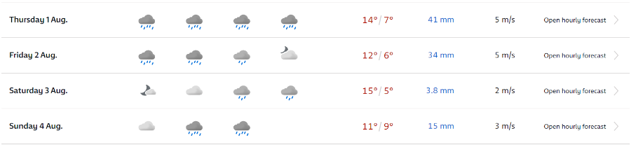 Tanto la meteórologa de Chilevisión Allison Göhler como el Instituto Meteorológico de Noruega adelantan lluvia para los primeros días de agosto. En total, podrían ser hasta 94 milímetros de agua caída.