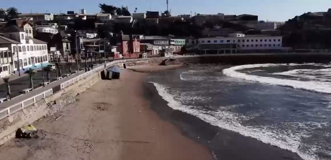 Esta situación ya fue advertida en diciembre del año pasado por el alcalde de este balneario de la Región de Valparaíso, Rodrigo García, quien luego que se viralizaran imágenes que mostraban cómo las olas se "tragaban" la arena, aseguró que "la playa se nos achicó un poco, pero aún hay Cartagena para rato".