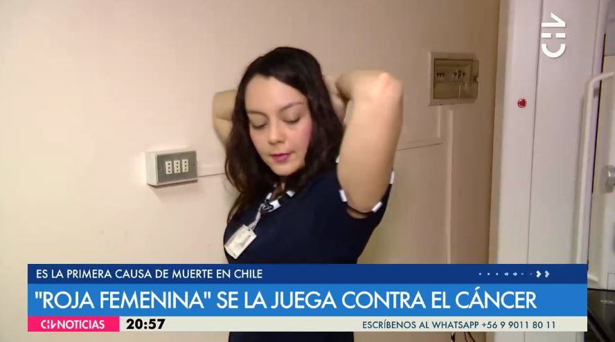 El gesto emulaba los pasos iniciales para el autoexamen que permite detectar el cáncer de mamas, un llamado a la conciencia frente a una amenaza que cada día que cobra la vida de cuatro mujeres en el país.