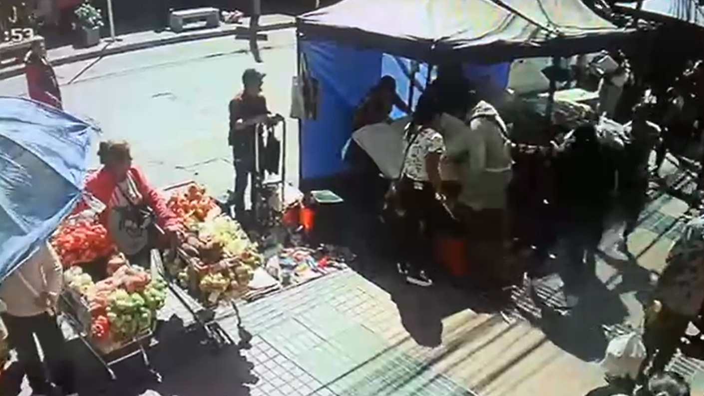 A raíz de la pelea, se generó un alboroto en la calle, debido al desorden que quedó en los puestos ambulantes y carritos que estaban al costado.