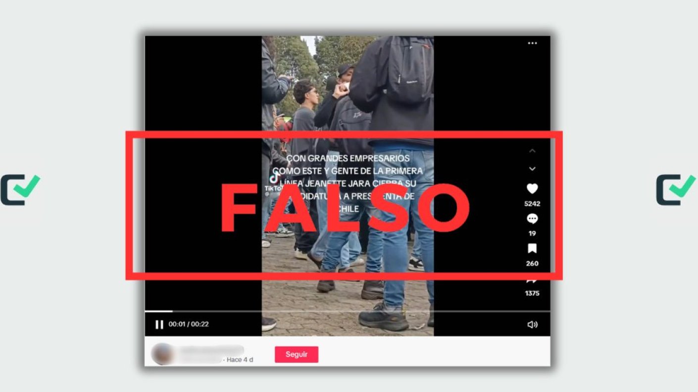 Usuarios en redes sociales han compartido vía TikTok y X un video cuyo texto menciona: “Con grandes empresarios como este y gente de la primera línea Jeannette Jara cierra su candidatura a presidenta de Chile”.