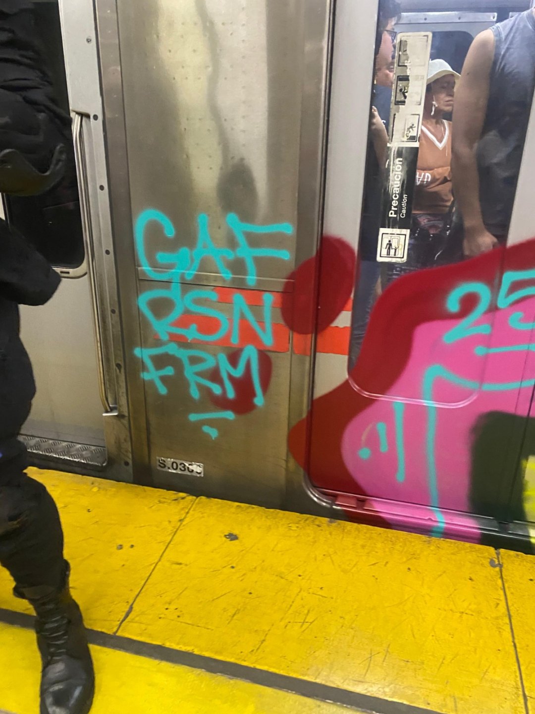 Luego procedieron a bajar para hacer rayados a lo largo de los vagones y posteriormente huir por una de las rejas laterales.