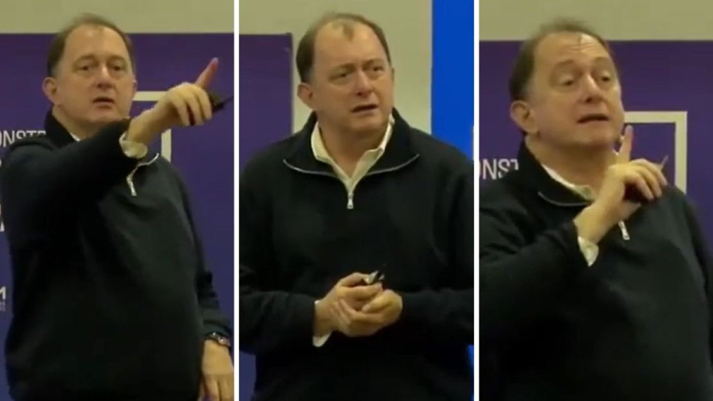 Durante su intervención, el futuro ministro de Vivienda se enfrentó a un asistente y arremetió contra "fanáticos ambientalistas" por la paralización de obras tras hallazgos de flora y fauna.