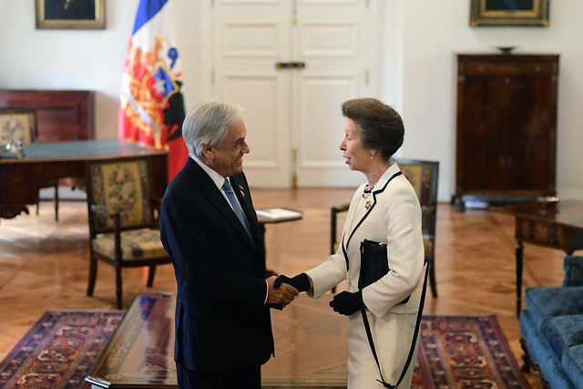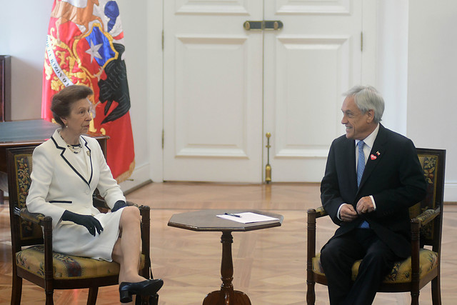 La princesa de 68 años sostuvo un encuentro con el presidente Sebastián Piñera en La Moneda, donde mantuvieron una conversación sobre la Marina chilena y la Marina Real británica, junto con la historia de Lord Thomas Cochrane, quien llegó a la ciudad de Valparaíso en 1818, precisó Biobio Chile.