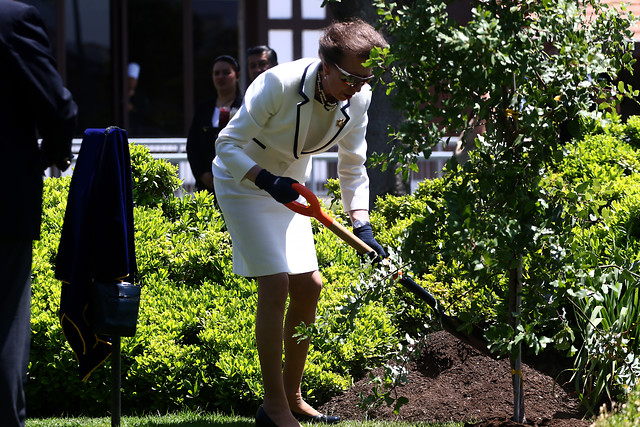 Ana, la hermana del príncipe Carlos, llegó en el marco del aniversario 200 de la Armada. Entre sus actividades plantó un Peumo, árbol característico del centro de Chile.