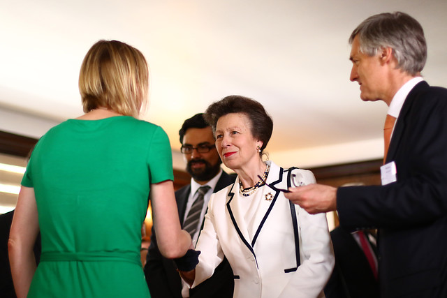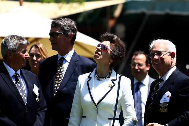 La hermana del príncipe Carlos llegó al país en compañía de su segundo esposo, el vicealmirante Timothy Laurence, quienes visitaron el club social y deportivo Prince of Wales Country Club, donde plataron un Peumo, árbol característico del centro de Chile.