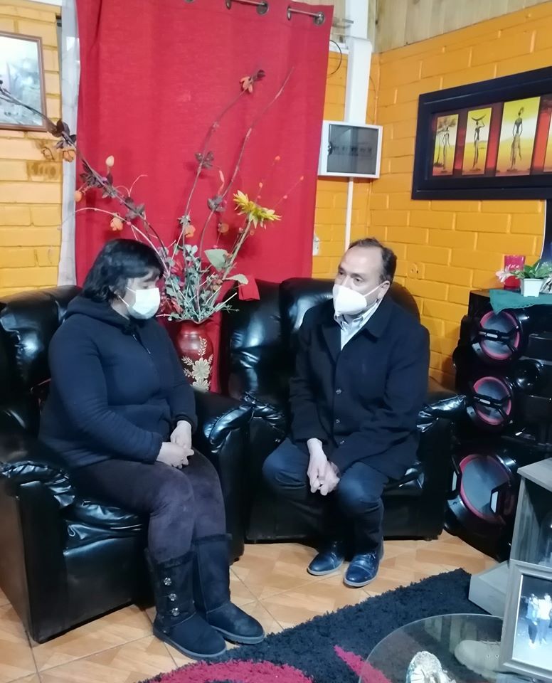La primera actividad del nuevo alcalde fue una visita a Fabiola Campillai, quien perdió la visión de ambos ojos tras ser impactada por una bomba lacrimógena en noviembre de 2019 y quien acusó recientemente abandono por parte del Gobierno.