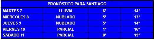 A partir de la tarde de este martes 7 de julio caerán precipitaciones cuantiosas sobre el centro-sur de Chile. Además, soplarán vientos de hasta 60 kilómetros por hora. Santiago podría recibir algunos chubascos.